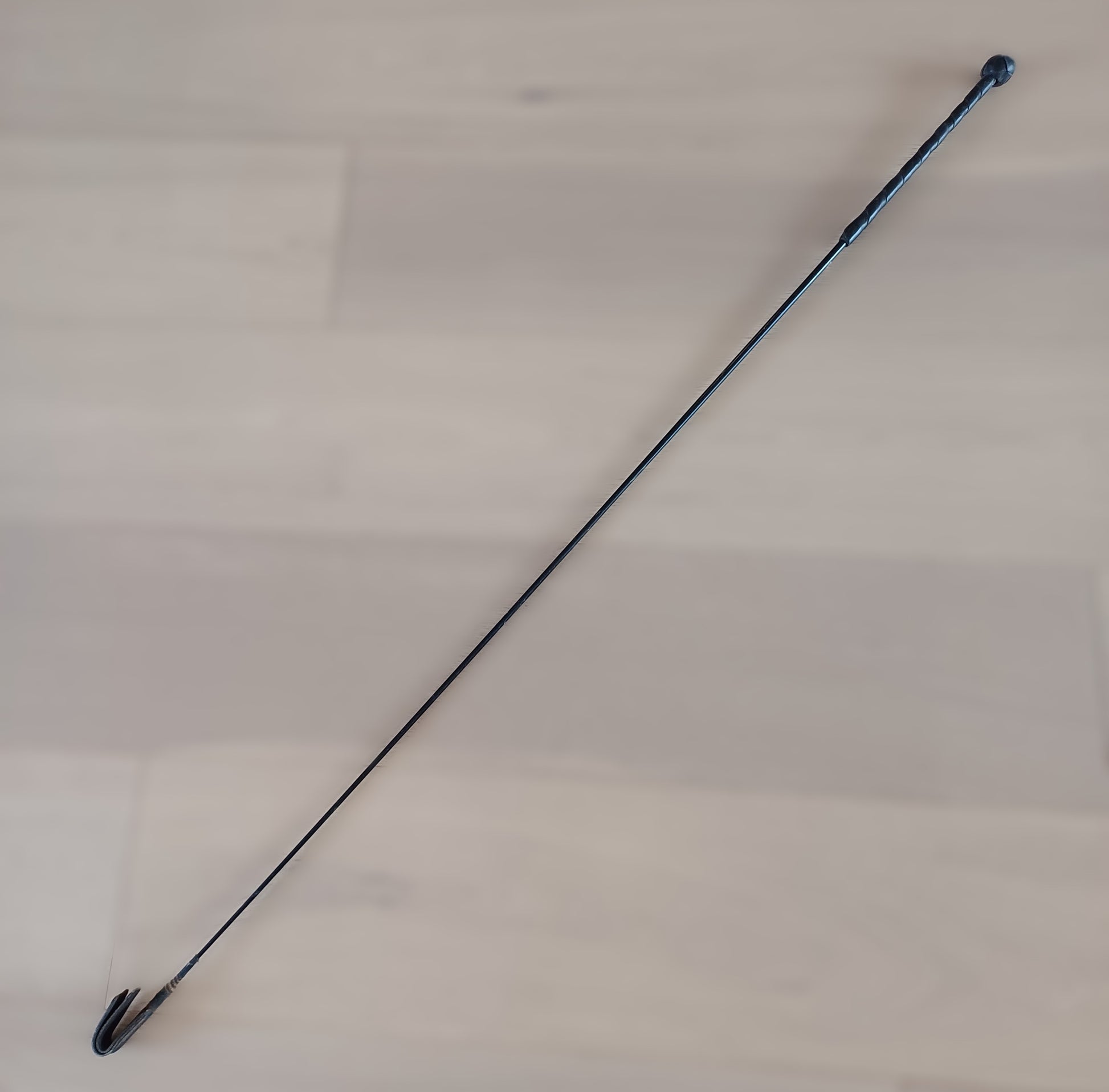 Deze gebruikte zwarte rijzweep is onmisbaar als u uw hulpen met finesse wilt begeleiden.
