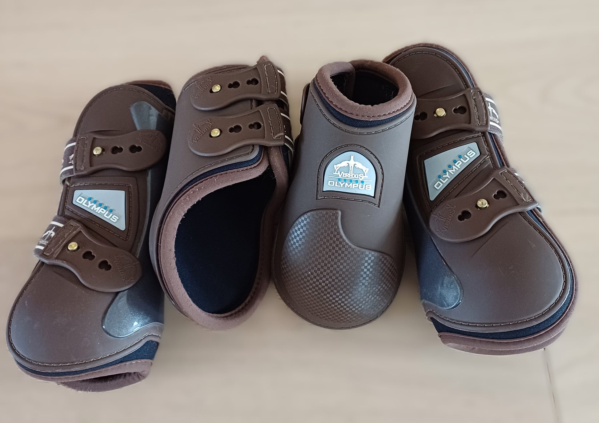Deze VEREDUS OLYMPUS beenkappen , in ponymaat , bieden optimale ondersteuning en maximaal comfort tijdens trainingen of dagelijkse uitstapjes. De set bestaat uit 2 voorbeenkappen in uitstekende staat en 2 nieuwe achterbeenkappen , die volledige bescherming van de ledematen garanderen en toch licht en comfortabel blijven.
