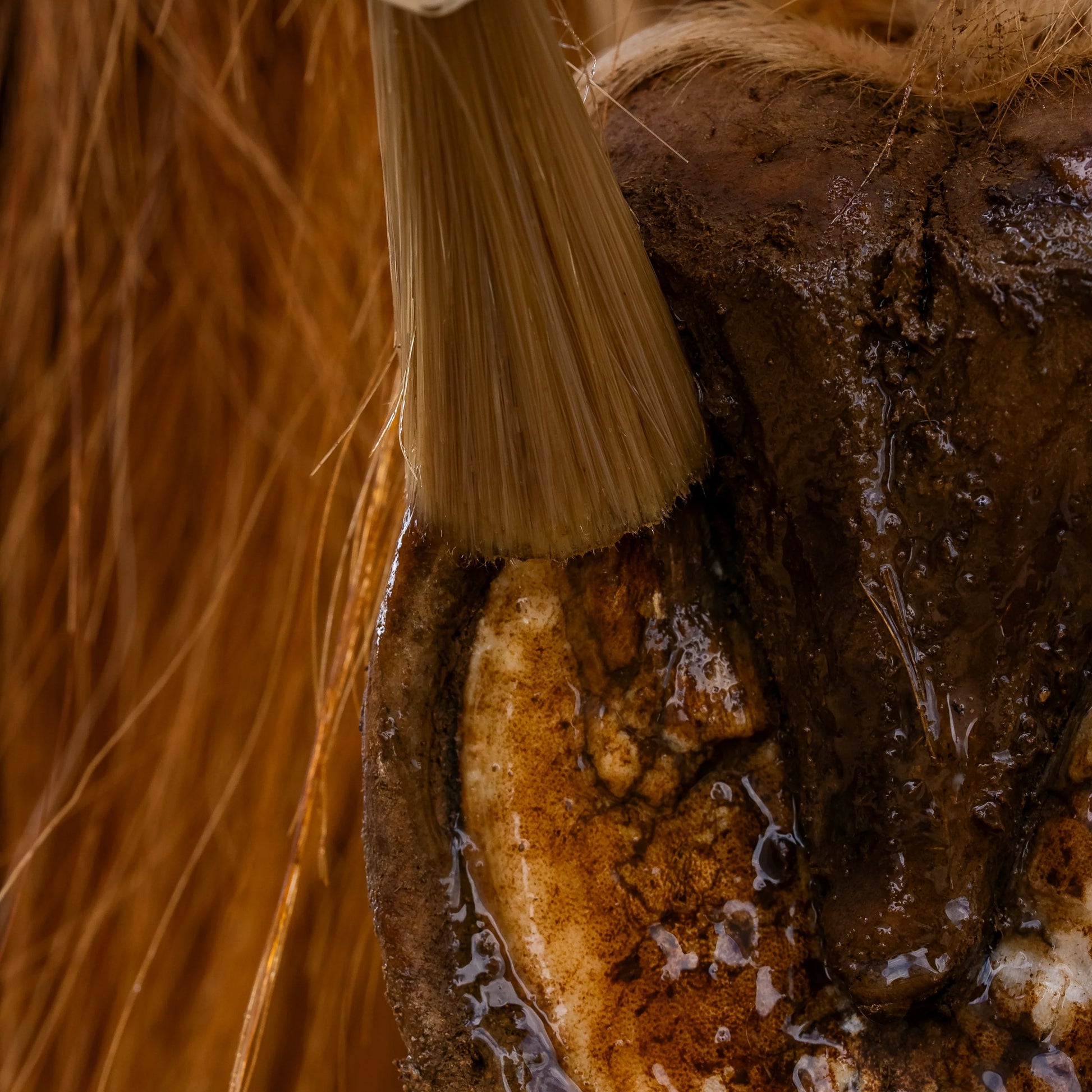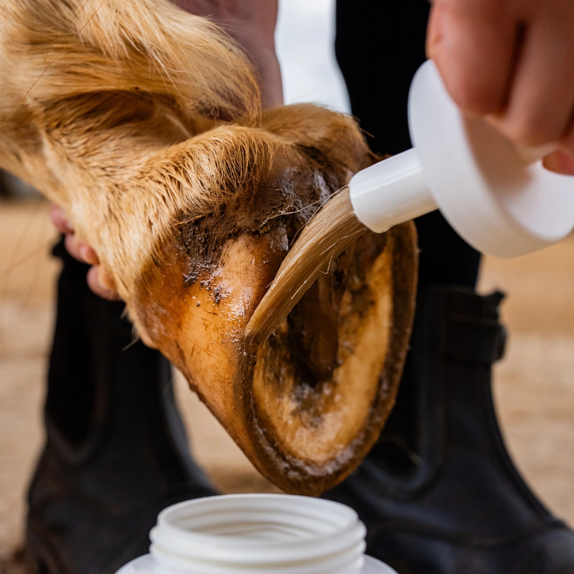 Appliquez quotidiennement sur sabots propres et secs, en insistant sur la couronne et les parois. Idéal pour les chevaux aux sabots cassants, secs ou fragilisés.