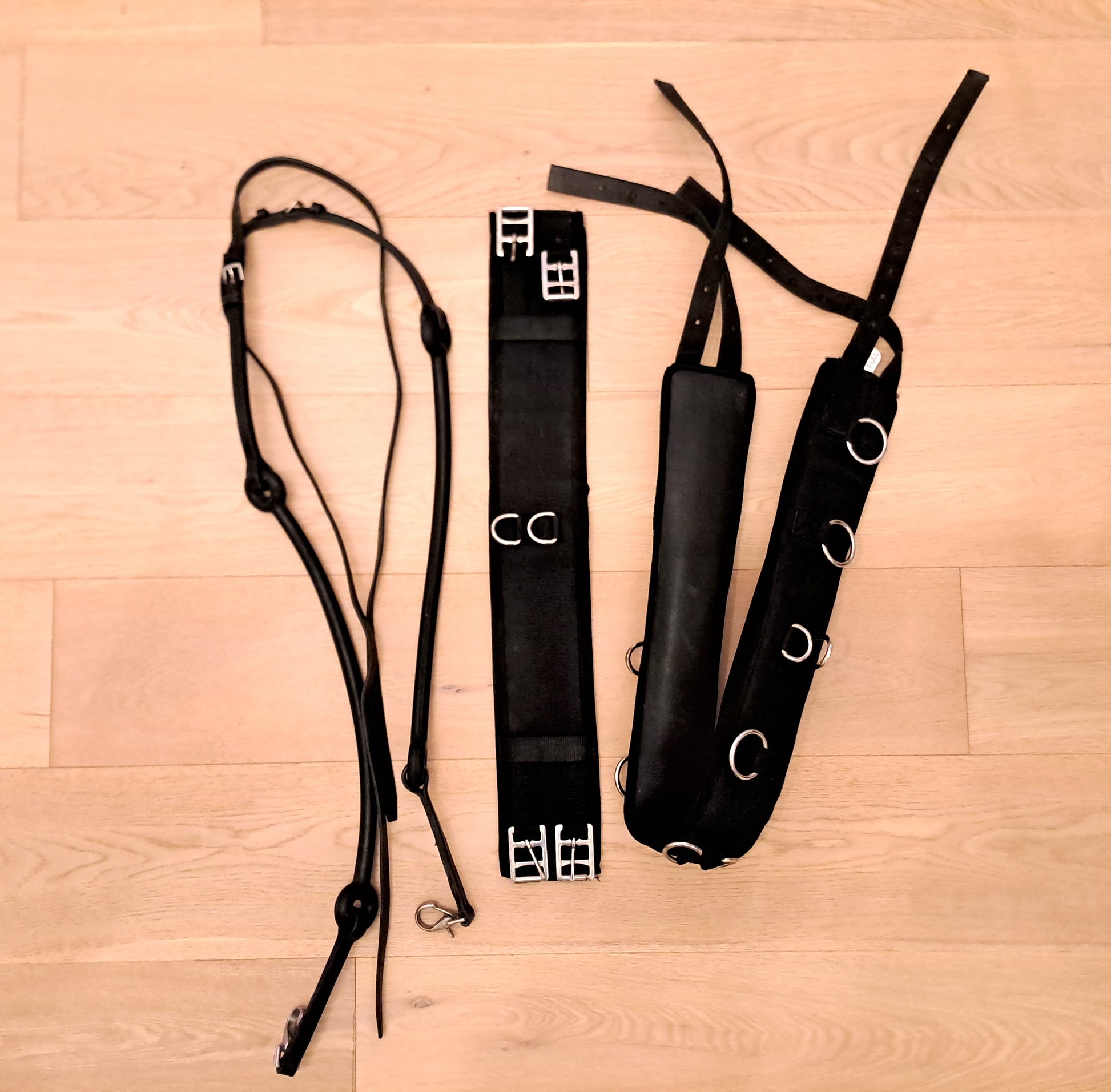 Deze zwarte set met singel en vaste teugels is praktisch en functioneel. Ideaal voor longeren en het versterken van de spieren van uw paard.