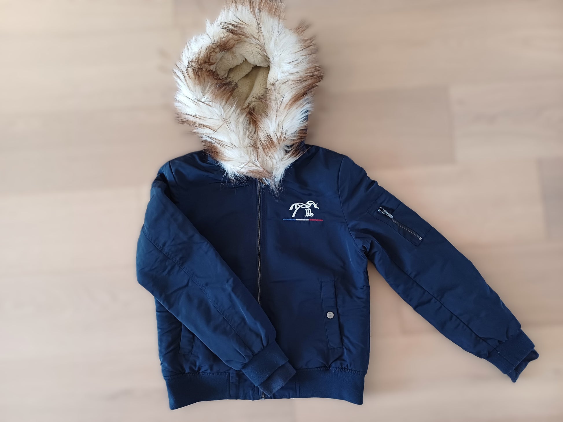 In maat XS (14-16 jaar) heeft hij een getailleerde en vrouwelijke snit. De chique en tijdloze marineblauwe kleur, gecombineerd met een zeer warm design, maakt hem een onmisbaar item voor de winter, zowel op stal als daarbuiten.