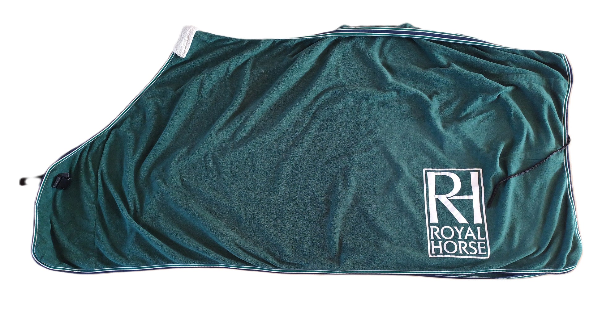 Offrez à votre compagnon un confort douillet après l'effort ou lors des journées plus fraîches grâce à cette couverture polaire Royal Horse en coloris vert, spécialement conçue pour allier chaleur et respirabilité.